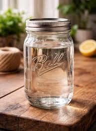 Picture a clear mason jar filled with water.